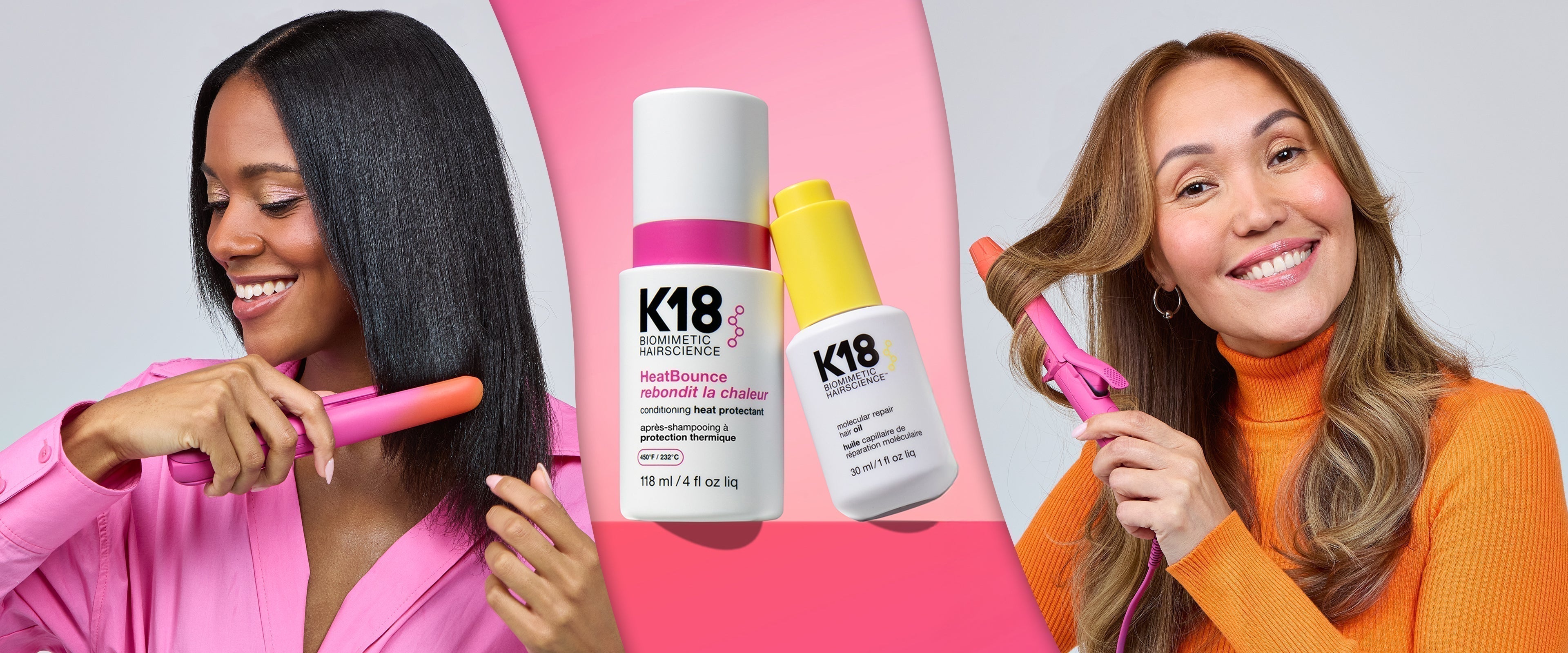 While both the molecular repair hair oil and HeatBounce have heat protection benefits, HeatBounce defends extra deep to help protect against color fade, dry feeling, dullness, and breakage. The oil delivers more traditional heat protection on the outer layers of hair and clinically proven damage repair.
