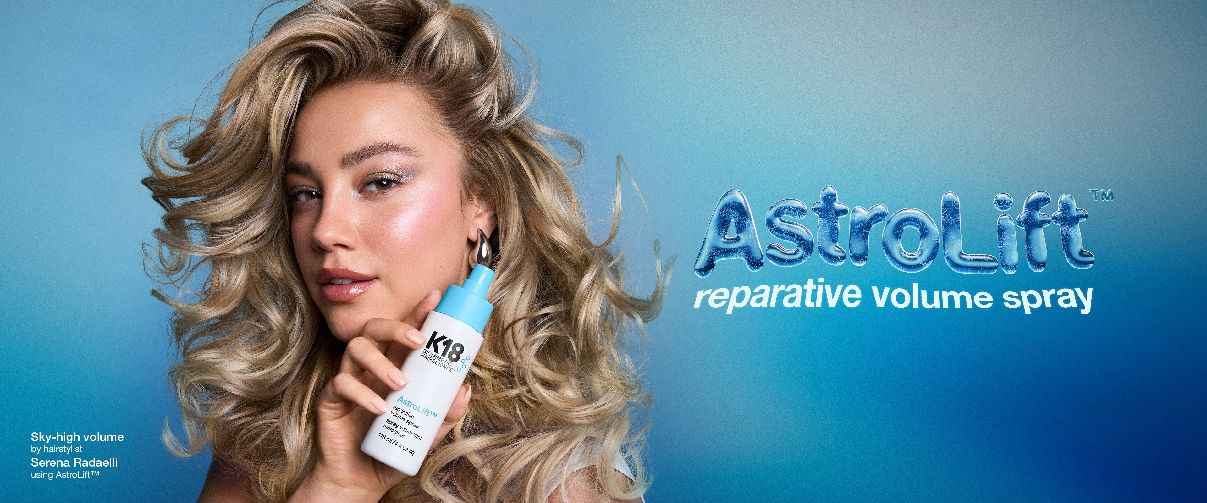 That’s where AstroLift™ reparative volume spray comes in. Powered by K18PEPTIDE™ and a hair volumizing blend, it weightlessly lifts all hair types while targeting the root cause of volume loss at hair’s innermost layers—damage.