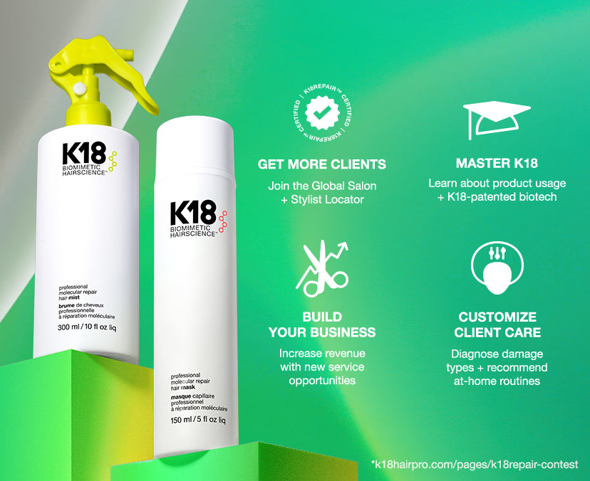 Wait 3-4 shampoos post-treatment before using the K18 molecular repair hair mask in the salon or at home.